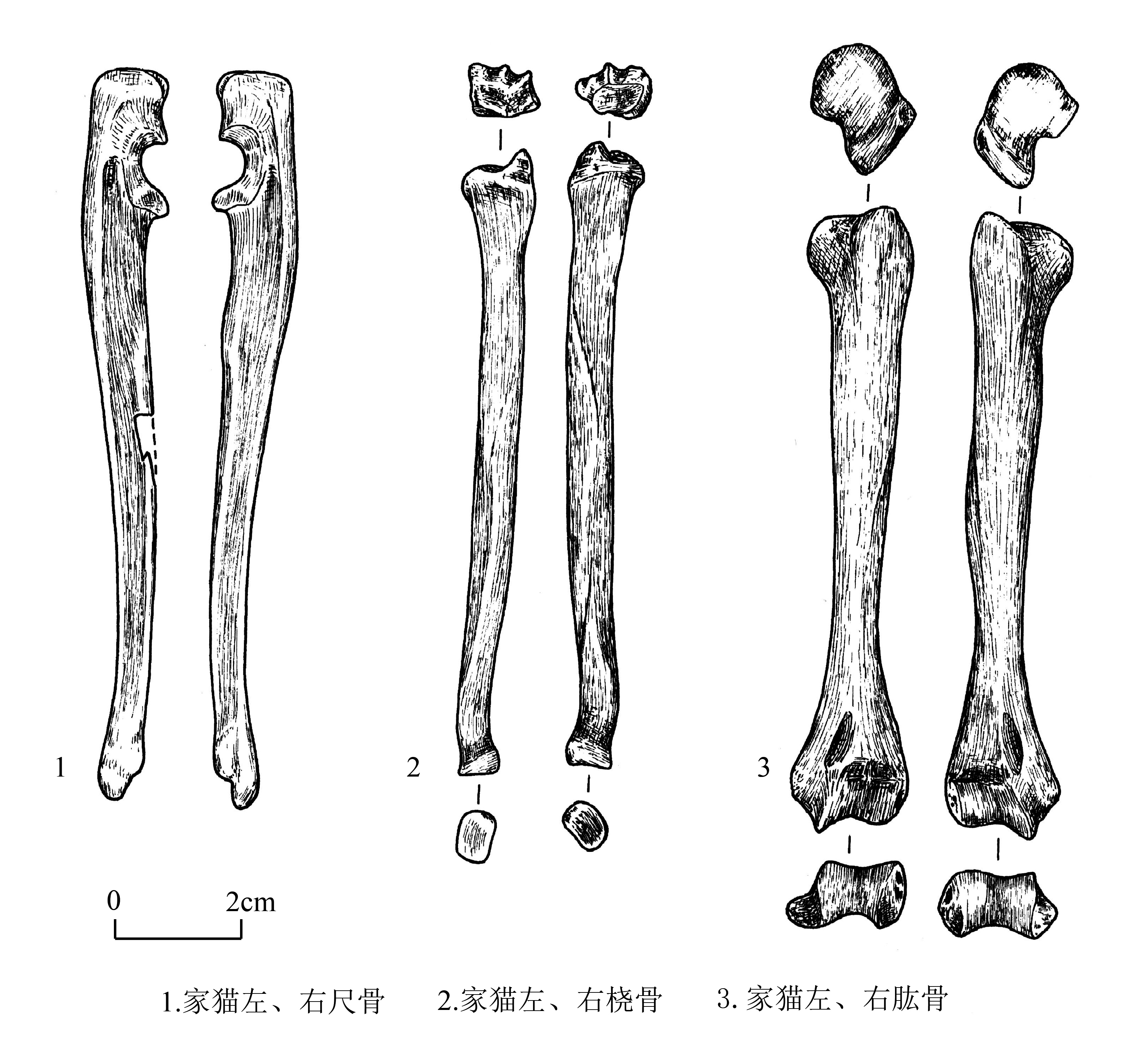 用动物遗存复原古人生活考古工作者在新乡宋墓中清理出了一批保存完好的动物骨骼。那么,研究动物骨骼的意义何在呢?其实,动物考古是科技考古的一个分支,通过对动物遗存进行科学、系统的采集和研究,考古工作者可以从特定的角度复原古人的生活。考古工作者将该批动物骨骼运送到科技考古实验室进行清理、拼合。当这些散乱的碎骨被按照生长部位拼合完成后,一具猫骨呈现在人们眼前。但是,仅仅认出这是猫骨还不够,这只猫属于什么品种?是野猫还是家猫?它又为何会出现在墓中?身份初鉴定野猫是在野外自然生长的群体,其生存环境与人类有重叠,所以可能因为被人类捕食、被其他动物携带或被水流冲击,进入人类活动遗迹。但是,出土的野猫骨骼常有人类捕猎、切割或啃咬的痕迹(其原因可能是野猫被人类捕食后,造成了肢体分离、骨骼破碎),且骨骼数量较少,不够完整。家猫是被人类驯化、饲养的猫,人们会像驯养、利用其他家畜一样对待它。古人最初养猫的目的,是为了让它们捕鼠。在中国的考古发掘中,可确定的家猫遗骸并不多,但它们都有一个共同点,即同具遗骸的骨骼数量较为完整。同时,家猫骨骼一般都比较完好,没有人类留下的砍砸、切割或啃咬痕迹。考古工作者根据各种考古现象进行综合分析,确定新乡宋墓中出土的这具猫骨是一只家猫。中国考古史上第一只宠物猫考古工作者对这具猫骨仔细观察后发现,该猫左、右侧下颌(hé)骨牙齿磨耗差别很大,尤其是右下颌骨第一下臼(jiù)齿(猫在进食时作用最大的牙齿)齿尖磨耗程度远大于左下颌骨相同齿位的牙齿。这说明它生前经常高频率使用右侧牙齿进行咀嚼。此现象被称为偏侧咀嚼,在现代人和家养动物中都比较常见。其原因是个体在养成一定饮食癖好后,对喜欢的食物会习惯性使用固定齿位进行咀嚼。这只家猫的这种偏侧咀嚼特征,说明它生前有稳定的喜好食物,养成了长期用固定齿位品尝某种食物的习惯。这种进食喂养,已不同于一般食谱较杂的家猫,而是与人类喂养宠物相符。至此,新乡宋墓出土的这具猫骨有了一个特殊的身份——它是中国考古史上第一只宠物猫。墓主与这只猫之间关系亲密,在去世后特意嘱托将猫安放在其棺床上,与墓主人比肩而眠,期望在另一个世界里也能与它继续相依相伴。