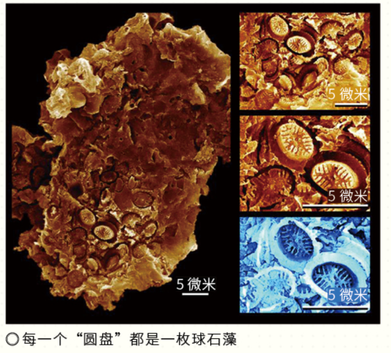 全球气候变暖可能对球石藻的生存造成影响。球石藻是由碳酸钙构成的,当人类活动排放的二氧化碳进入海洋,酸性的海水会让球石藻体内的碳酸钙加速溶解。然而,最新研究发现,球石藻并没有消失,而是依附在化石的表面,用自己的方式在抵御气候变化。