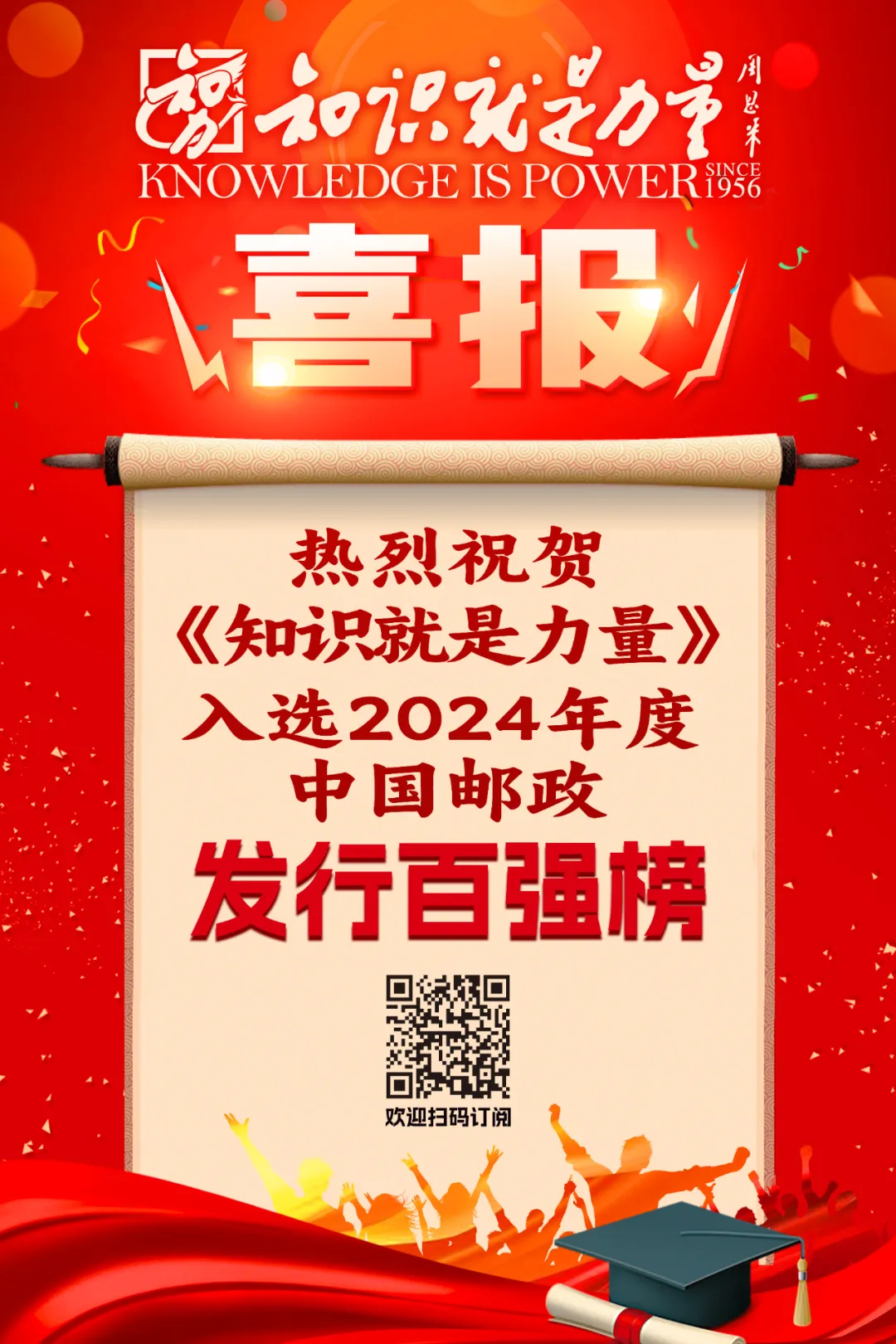 《知识就是力量》杂志再次荣登誉榜!从2021-2024年,这已经是《知识就是力量》杂志连续四年入选“中国邮政发行百强榜”了。