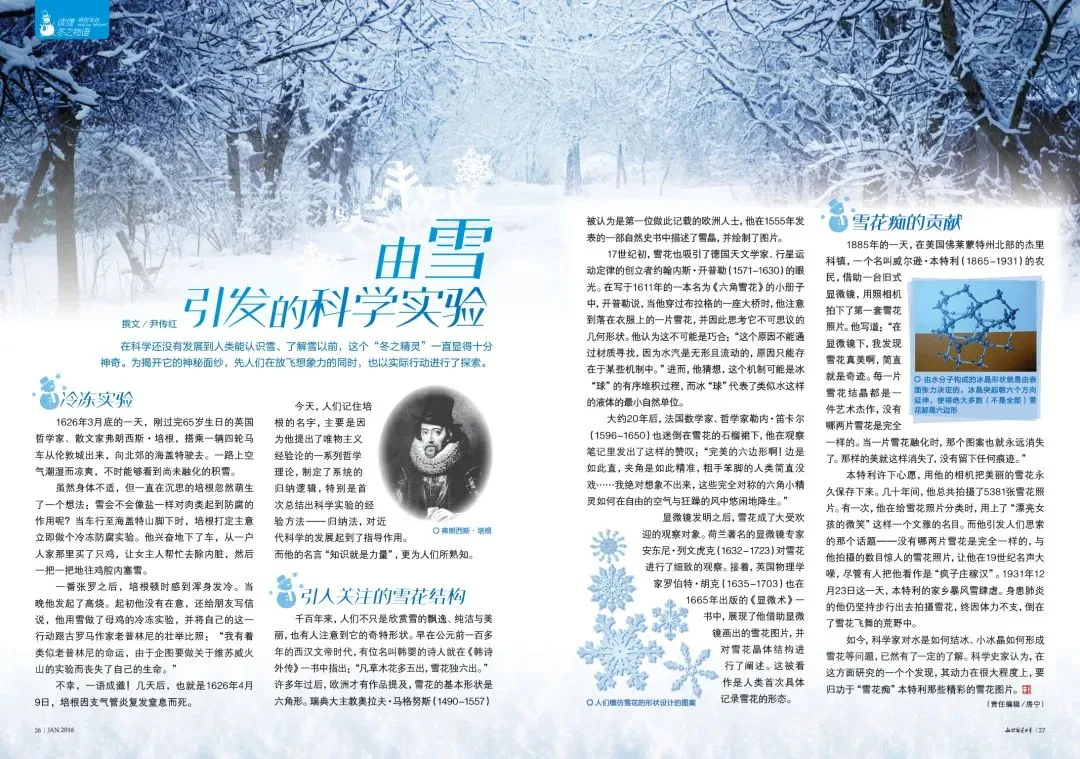 2022年,语文高考试卷全国乙卷实用类文本阅读材料中,其中一则选自中国科普作家协会副理事长尹传红发表在《知识就是力量》杂志的文章《由雪引发的科学实验》。
