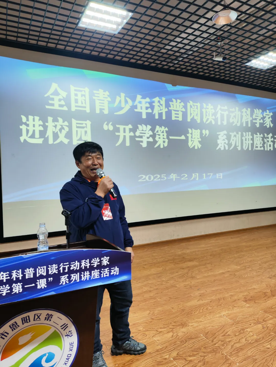 在新学期开学第一天,中国地质科学院地质研究所研究员、自然资源首席科学传播专家苏德辰,北京航空航天大学软件学院教授王宝会,国家植物园科普馆馆长王康,中国地球物理学会副秘书长兼科普委秘书长周坚鑫,中国养蜂学会科普专业委员会副主任姚军,北京邮电大学副教授王晓茹六位科学家代表,分别走进巴中市恩阳区六所中小学校,恩阳中学本部校区、恩阳中学新校区、恩阳职业中学、恩阳二小、川师附四中、文治实验学校,为孩子们带来了别开生面的“开学第一课”系列科普讲座。讲座内容涵盖了航空航天、人工智能、地球科学、生命科学等六大主题,为学生拓宽科学视野,开启思维之门。