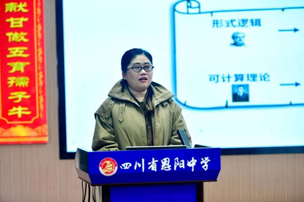恩阳中学老校区学术报告厅,北京邮电大学计算机学院副教授王晓茹带来了一场别开生面的人工智能科普讲座。讲座围绕人工智能、大模型技术、体验大模型三个方面展开。王教授借助北京冬奥会《雪花》节目里的计算机视觉技术,结合人类大脑原理引入神经元和神经网络概念,讲解深度学习原理。还借助 DeepSeek 等平台,让同学们体验通用人工智能技术。