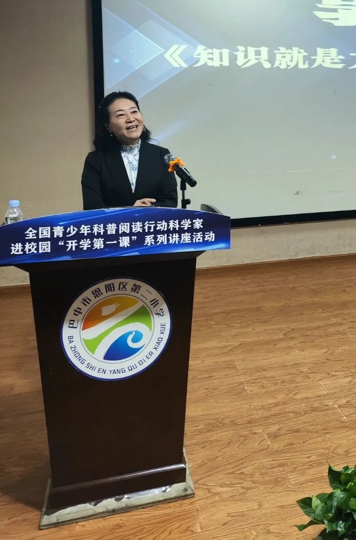 巴中市恩阳区委常委、宣传部部长付玉阶,恩阳区教科局局长王朝阳,恩阳区人民政府总督学李顺龙出席。《知识就是力量》杂志社长、主编郭晶致辞,希望通过“全国青少年科普阅读行动”、“读《知识就是力量》,给科学家写信”等活动,让更多的青少年了解科学家的成就和贡献,接触前沿的科学知识,树立远大的科学志向,帮助他们打开科学的大门,培养他们的科学素养和创新精神。郭晶社长表示,巴中自古崇文尚德、人杰地灵,非常重视人才的培养,也因此铸就了“古有张思训问天,今有吴伟仁探月”,欢迎同学和老师们来到知识就是力量科普视听馆,走进知识就是力量科普大讲堂,聆听科学家的讲座,以科学家为人生的榜样。