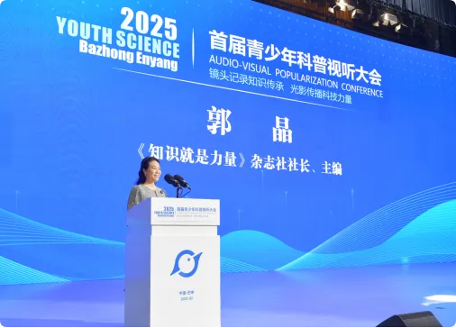 首届青少年科普视听大会上,“科学少年中国行・科旅巴中” 科学文化研学体系正式发布。《知识就是力量》杂志社社长、主编郭晶宣读该研学体系。