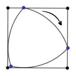 鲁洛克斯三角形钻头原理示意图及其孔洞