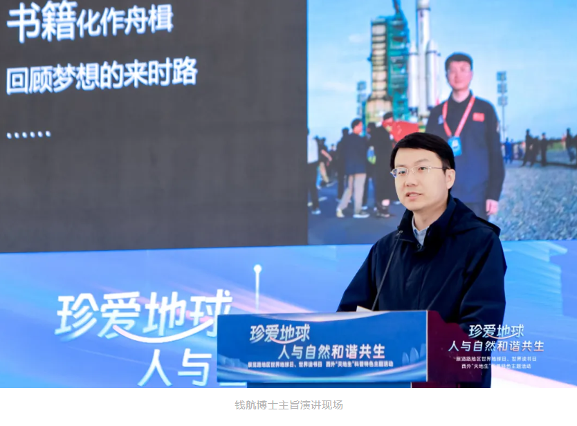 航天科技教育专家、《知识就是力量》杂志编委钱航以《以书为舟,探索宇宙与地球的对话》为题,在活动首篇章带来压轴演讲。他立足飞行器设计专业背景,以 “书籍溯源飞天梦” “中国航天硬核成就” “宇宙视角下的地球守护” 为脉络,深入浅出地阐述了航天科技与地球保护的内在联系。