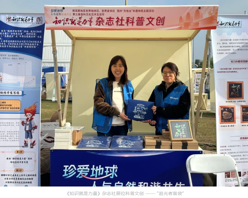 同步启幕的文化市集上,《知识就是力量》杂志社精心打造的三个主题展位尤为瞩目。展位精心陈列了涵盖天文、地质、生物等领域的精选主题期刊,既有经典科普文章回顾,也有前沿科技解读,吸引众多市民驻足翻阅,感受科学知识的历久弥新。特别设计“追光者盲袋”文创产品,为科普体验注入互动元素,让公众在 “拆盲袋” 的惊喜中亲近科学文化。不少青少年表示,通过展位了解到杂志丰富的内容体系,未来将持续关注科学知识的传播。杂志社以‘科普+潮玩’模式打破知识传播的边界,让科学真正‘活’起来。”