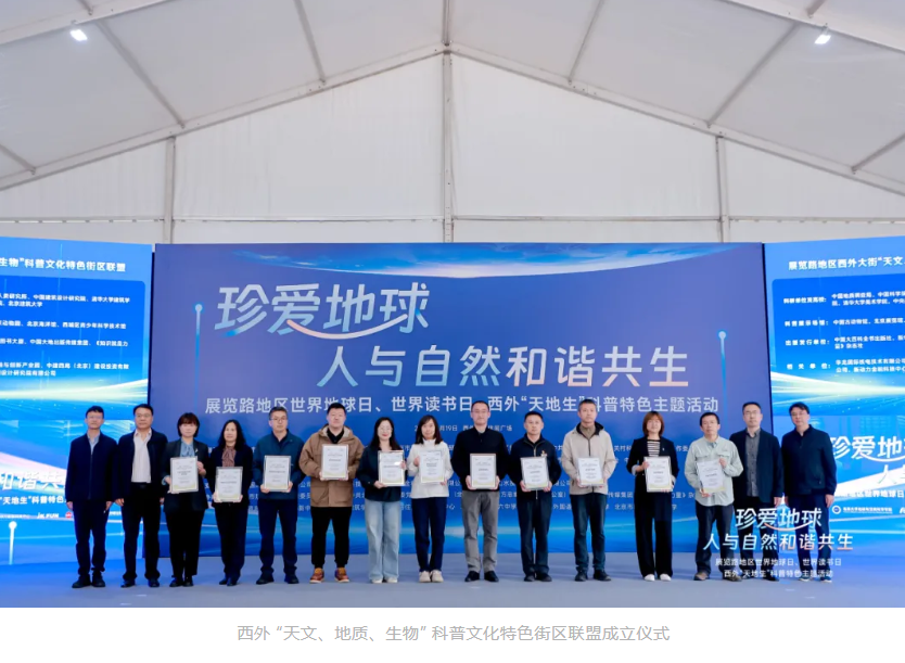 4月19日,在第56个世界地球日与第30个世界读书日即将到来之际,由北京市西城区展览路街道主办的“珍爱地球 人与自然和谐共生——西外‘天地生’科普特色主题活动”在西外文化休闲广场隆重举行。受展览路街道工委邀请,《知识就是力量》杂志社深度参与活动策划与执行,携优质科普资源亮相主场活动与文化市集。古鱼类学家、中国科学院院士、中国科学院古脊椎动物与古人类研究所研究员、博士生导师、《知识就是力量》杂志社编委会副主任朱敏,航天科技教育专家、《知识就是力量》杂志社编委钱航,《知识就是力量》杂志社社长/主编郭晶出席活动,与院士、科学家、科普工作者、科技工作者、教育工作者、青少年代表及社区居民共赴这场科技与人文交织的科普活动。
