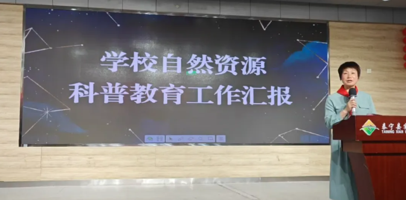 泰宁县实验小学校长谢世莲向与会人员详细介绍了学校开展自然资源国情国策教育的情况。她表示,学校将“李四光中队”以及《知识就是力量》科学小记者站为起点,让李四光等老一辈科学家的精神在校园生根发芽,号召同学们以科学家的精神为引领,发奋学习,长大报效祖国。