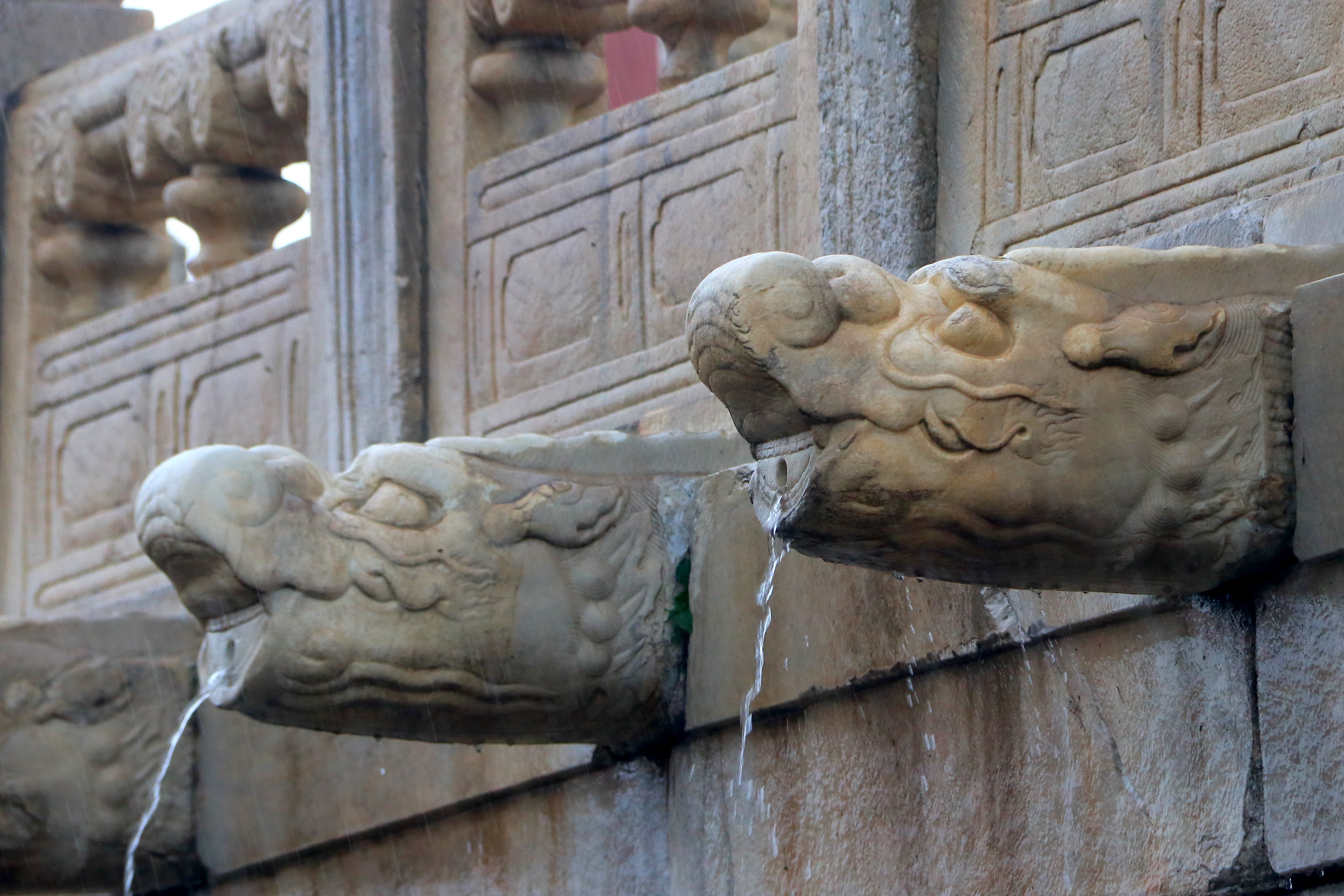 故宫的螭首装饰是其排水方式之一,图为故宫“龙吐水”景观