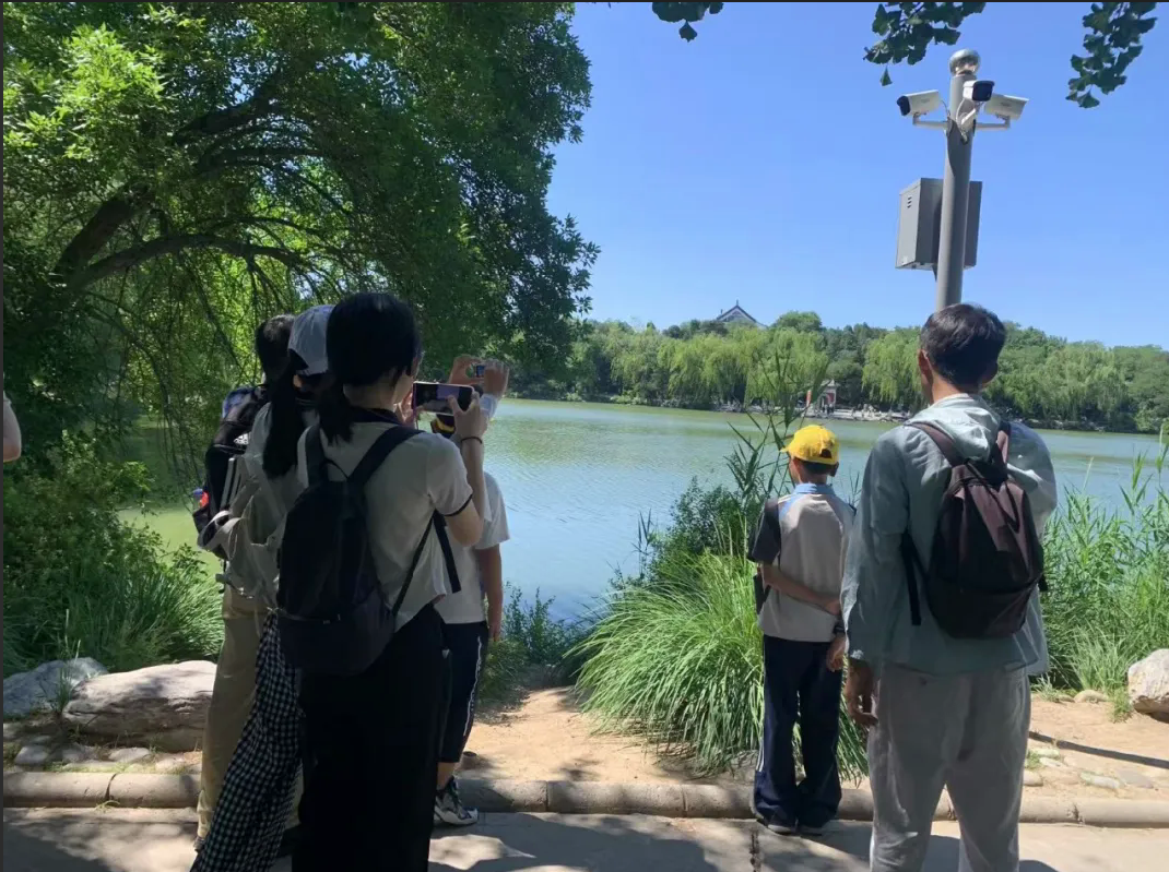 行动开始,小记者们在北大志愿者的引领下,漫步于未名湖畔。湖边垂柳依依,湖水波光粼粼,不远处的博雅塔巍峨耸立,燕园的独特魅力与浓厚学术氛围扑面而来。在博雅塔下,小记者们收到了一份特别的 “科学探索礼包”,里面有《知识就是力量》杂志以及记录梦想的精美笔记本。孩子们在湖畔静心阅读杂志,在志愿者的启发下,记录下自己对科学世界的好奇与憧憬,这些文字将成为他们探索科学的珍贵起点。