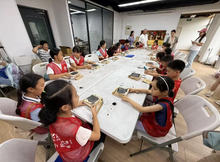 我们的科学小记者下午就来到荣宝斋感受文化氛围,还亲自使用木版画工具绘制了专属于自己的作品。