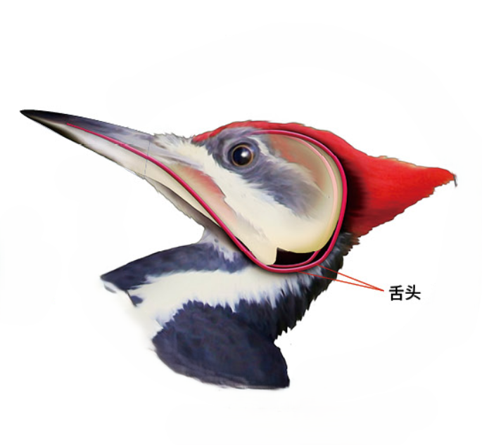 你是否注意过鸟类的舌头?由于生活环境和捕食方式不同,自然界中鸟类的舌头不仅形态各异,功能也各不相同。现在,让我们随作者一起探探舌头的秘密!啄木鸟:“盘”在脑袋里的舌头啄木鸟有着超薄的舌骨,舌头的长度能达到喙(hui,鸟兽的嘴)的2~3倍。因为喙放不下那么长的舌头,所以不用