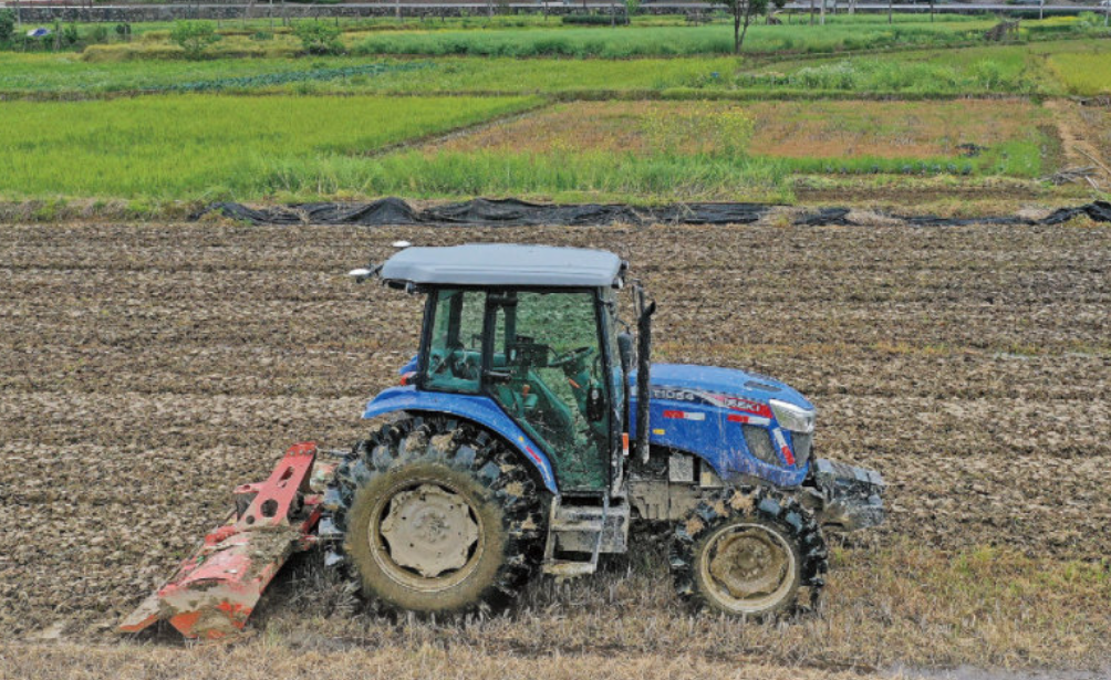 从 1958年新中国第一台拖拉机—东方红54型履带拖拉机开出厂门,经过64年的高速发展,拖拉机正逐渐走向无人驾驶时代。2022年4月14日,浙江杭州富阳区春建乡春建村无人驾驶农用拖拉机正在田中作业无人驾驶农用拖拉机“三头六臂”牛,是帮助人们犁地、整地的好帮手,拖拉机的出现解