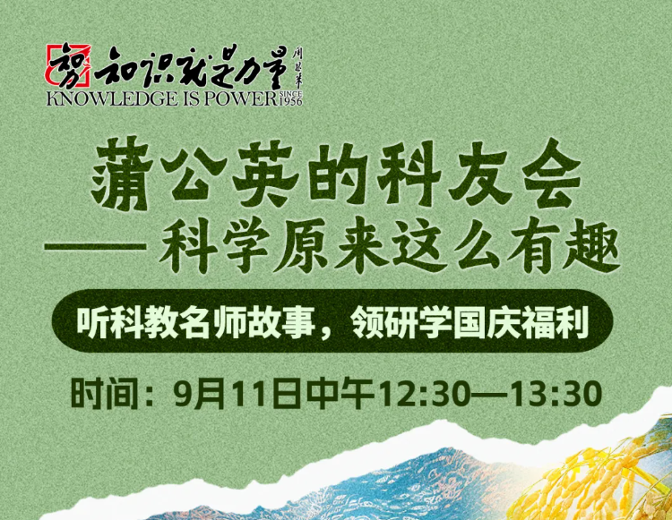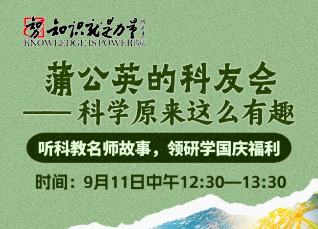 蒲公英的科友会《知识就是力量》官方直播间9/1112:30~13:30边吃午餐,边挖科学宝藏!