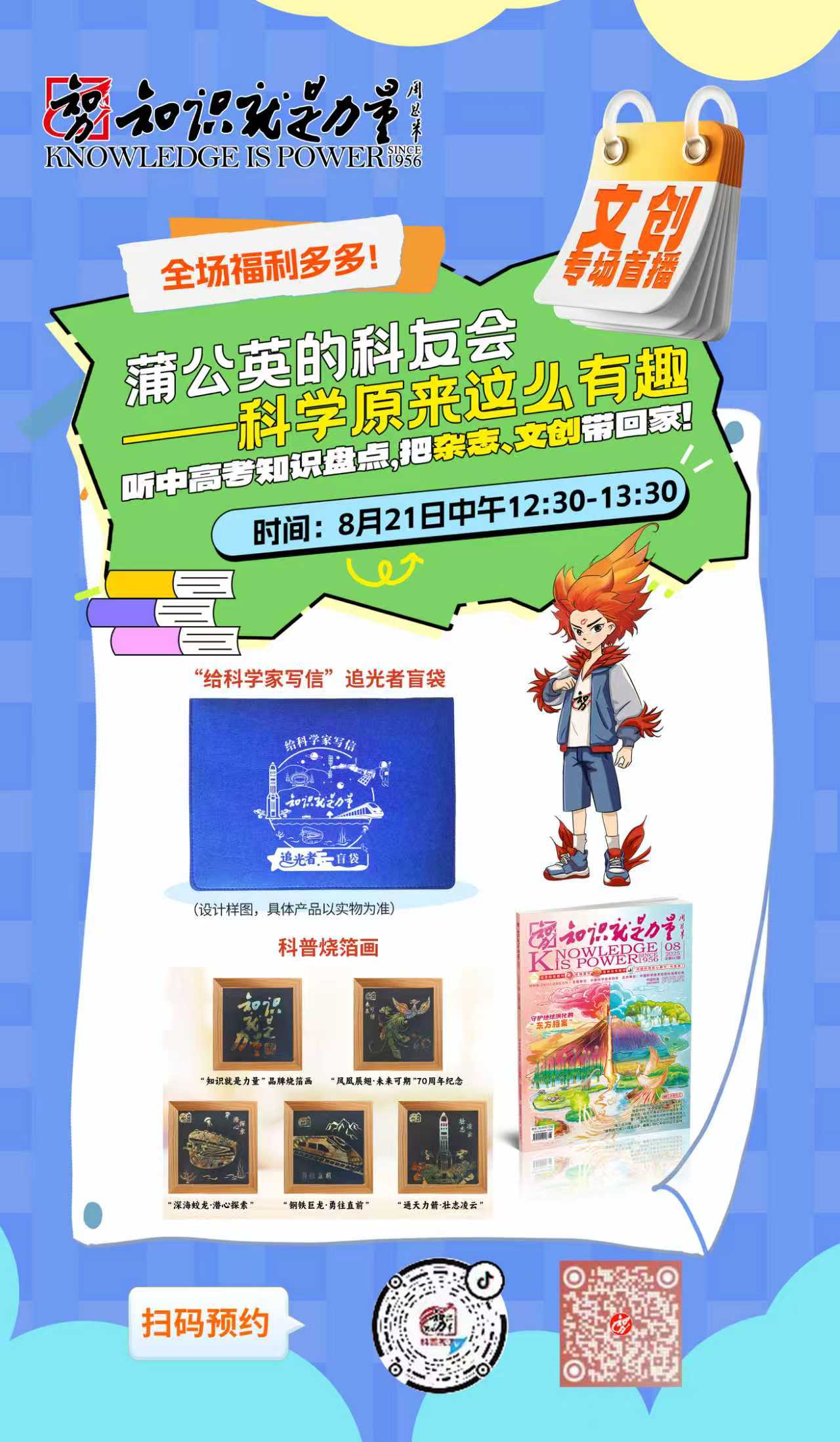 文创专场首播来袭!《知识就是力量》官方直播间“蒲公英的科友会”明日开播!科学原来这么有趣!