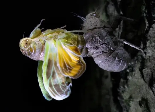 蜕变:蝉儿的神奇变身术在墙壁上蝉唱的蝉(蝉唱大多在树上进行,在墙壁上蝉唱是极为罕见的)