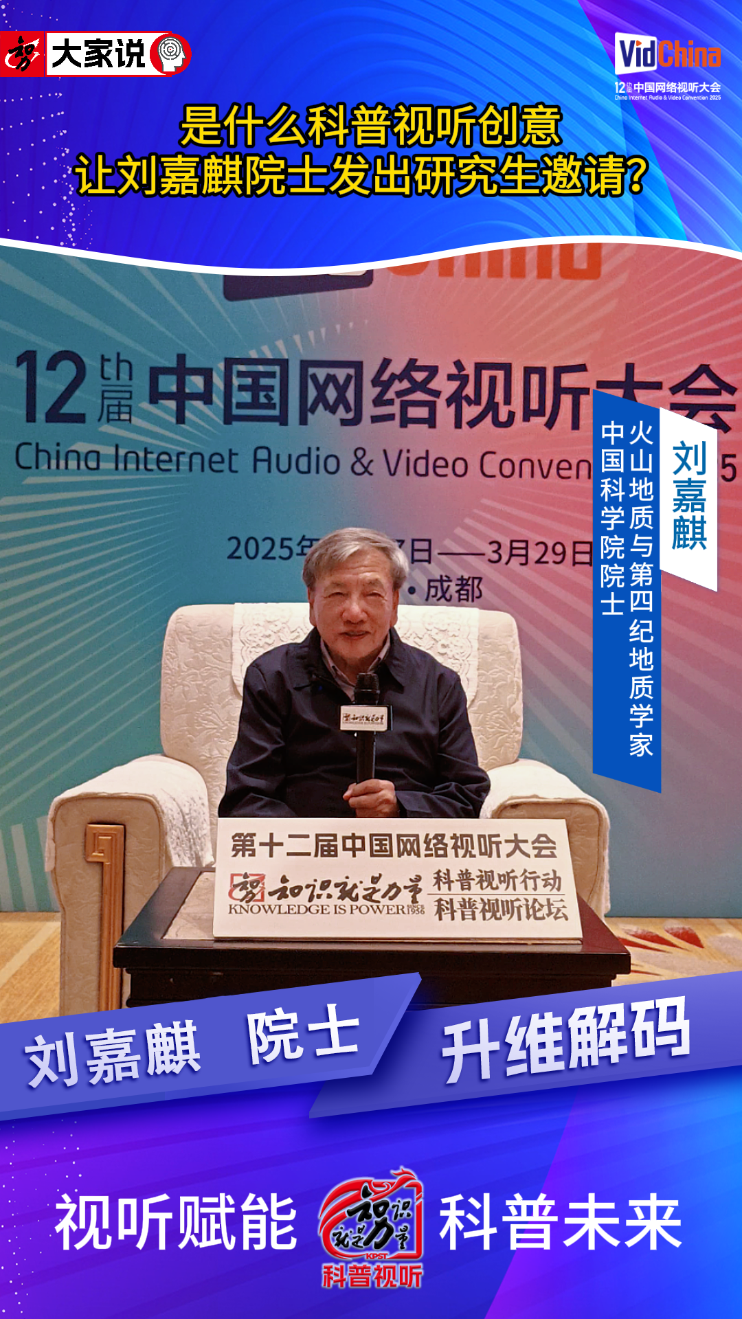 8888《大家说》刘嘉麒智慧解答|科普视听对科学文化传承的意义是什么?
