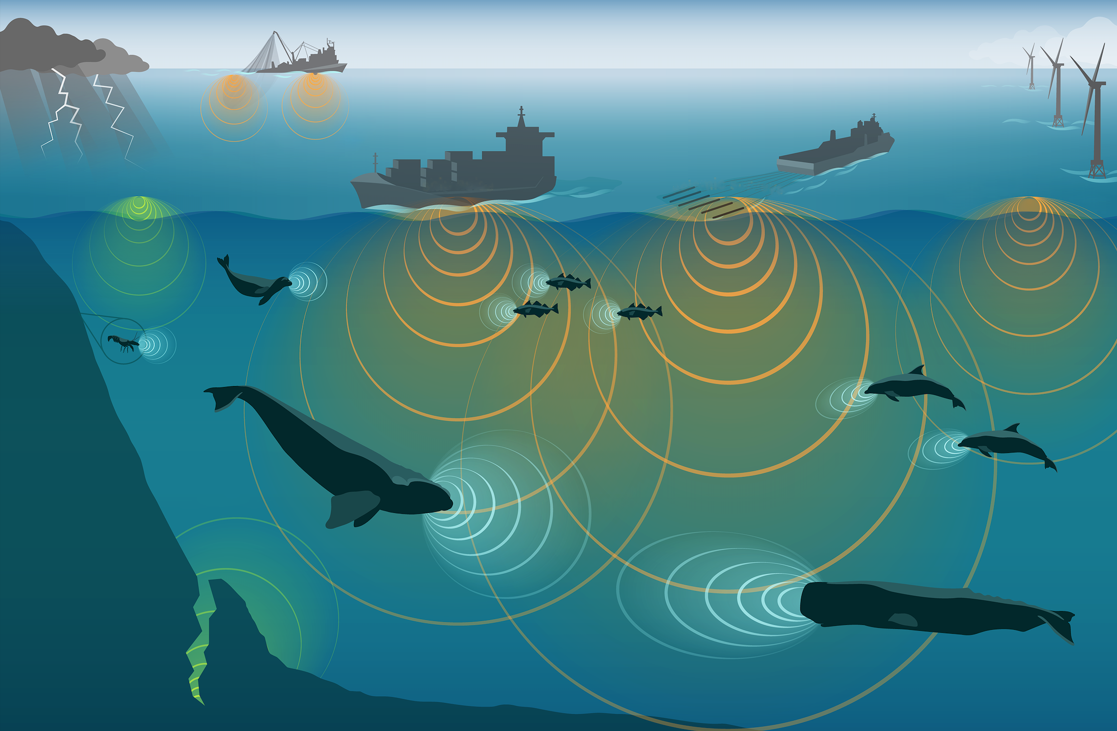 提到海洋污染,大家通常会想到漂浮的塑料垃圾、石油化学物质泄漏或是海洋酸化等,而噪声这种特殊的污染形式却很容易被忽略掉。长久以来,人们一直认为海底是一个寂静无声的世界,事实恰恰相反,海洋并不安静。随着人类在海洋的活动越来越多,产生的噪声开始打破原本的“自然和声”,并