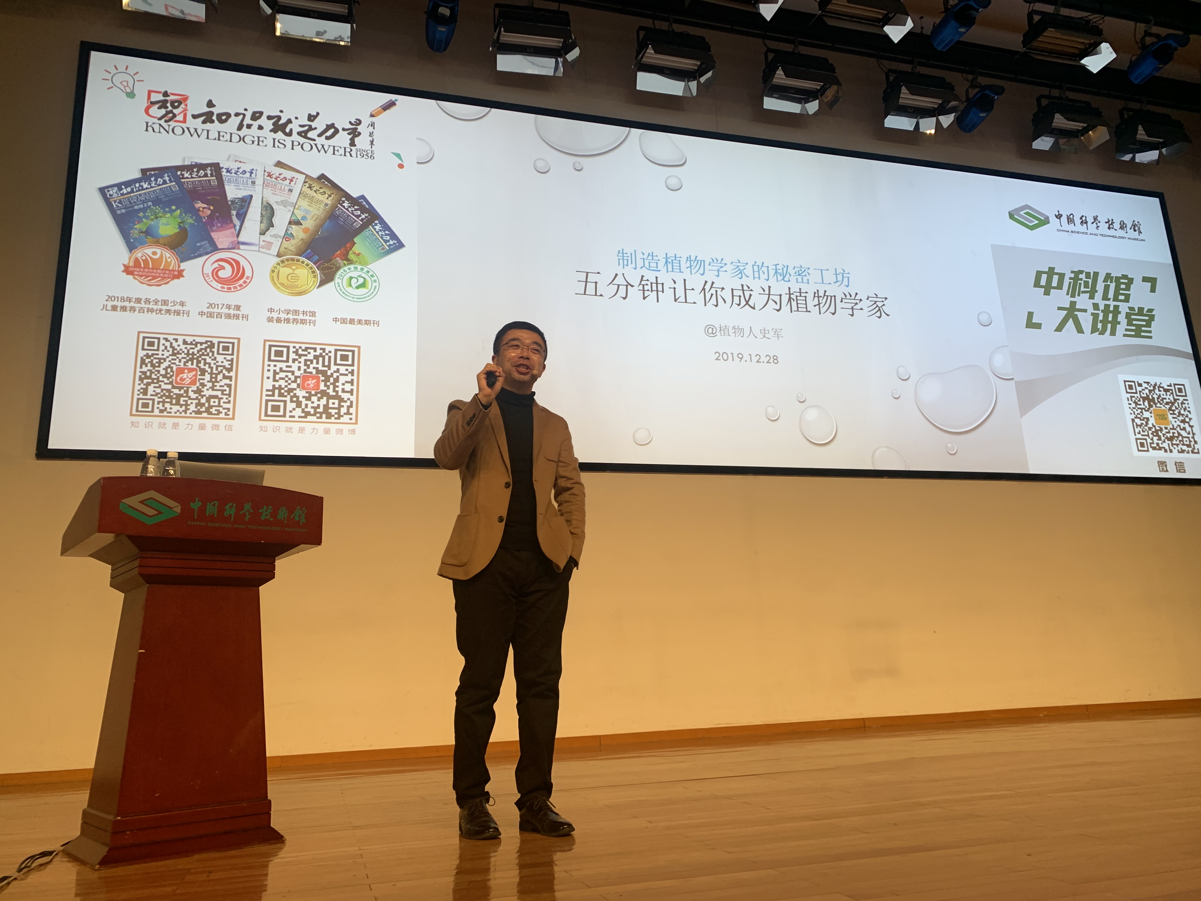 12月28日,《知识就是力量》杂志邀请植物学博士,“玉米实验室”创始人,科学松鼠会成员史军老师,来到中国科技馆一层报告厅,为同学们带来了一场主题为《五分钟让你成为植物学家》的讲座。