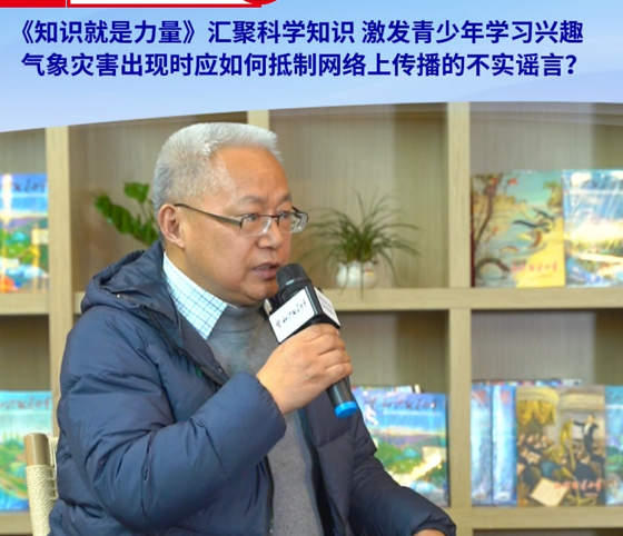 问:《知识就是力量》汇聚科学知识 激发青少年学习兴趣 气象灾害出现时应如何抵制网络上传播的不实谣言?周兵:“ 气象灾害出现的时候,我们要敢于第一时间发出声音。 ”问:本次大会如何利用优势打造更好的科普产品,让青少年理解气候的变化与防灾减灾的重要性?周兵:“我的理解有两个
